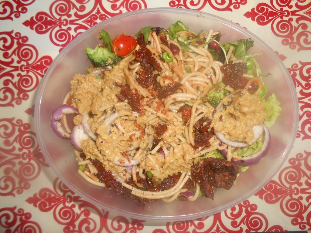 Yleensä teen peston, hummuksen ja erilaisen dippitahnan (mm. herne tai parsakaali-avokado) jämistä, kuten vaikka ylijääneistä kikherneistä. Olen vähentänyt parmesanin osuutta tahnoista, laittanut enemmän pähkinöitä. Pinjansiemenet ovat must, mutta tosi kalliita. Lisäksi ostan tosi usein kyllä valmista hummusta (stockan punajuurihummus on ihanin sekä Silva-merkkinen, jossa öljynä on camelinaöljyä). Resepti on siis suun mutikassa tehty! Vielä kirjoitan sen ylös kauniiksi tuunaamaani keittokirjaani.